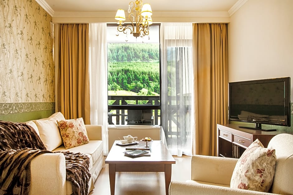 This room features a balcony or a terrace with mountain view, a seating area with a sofa or armchairs, a flat-screen TV with satellite channels, a mini-bar, a safety deposit box and a bathroom with a bath or a shower, a hairdryer, free toiletries, bathrobes and slippers.